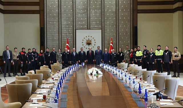Cumhurbaşkanımız Sayın Recep Tayyip Erdoğan, İçişleri Bakanımız Sayın Mustafa Çiftçi, Bakan Yardımcımız Sayın Ali Çelik, Emniyet Genel Müdürümüz Sayın Mahmut Demirtaş ve 23 kişilik heyetimizi kabul ettiler. Milletimizin huzur ve güvenliği için gece gündüz demeden görev yapan Türk Polis Teşkilatımızın fedakârlığı, cesareti ve vazife şuurunun en güçlü ifadesi olan bu anlamlı kabul dolayısıyla, muhterem Cumhurbaşkanımıza şükranlarımızı arz ediyoruz. 181 yıllık köklü geçmişiyle, hukukun üstünlüğünden taviz vermeden görevini ifa eden kahraman polislerimiz; devletimizin bekası, milletimizin esenliği için aynı azim ve kararlılıkla çalışmaya devam edecektir. Bu vesileyle, tüm emniyet mensuplarımızın 10 Nisan Polis Haftası’nı tebrik ediyor; görevleri başında şehit düşen kahramanlarımızı rahmetle, gazilerimizi minnetle yâd ediyorum. (İçişleri Bakanlığı)