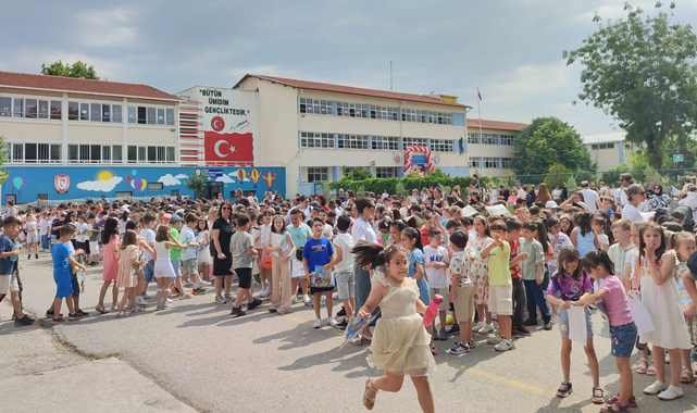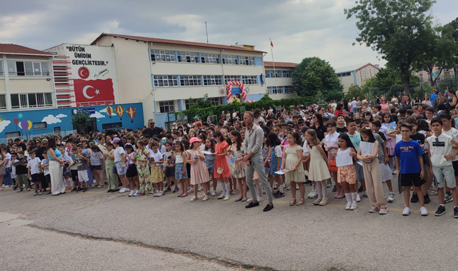 Törene öğrencilerin yanı sıra sınıf öğretmenleri ve veliler de katıldı. Renkli görüntülere sahne olan etkinlikte, öğrenciler arkadaşlarıyla birlikte karne heyecanını paylaşırken, öğretmenleriyle vedalaştı.