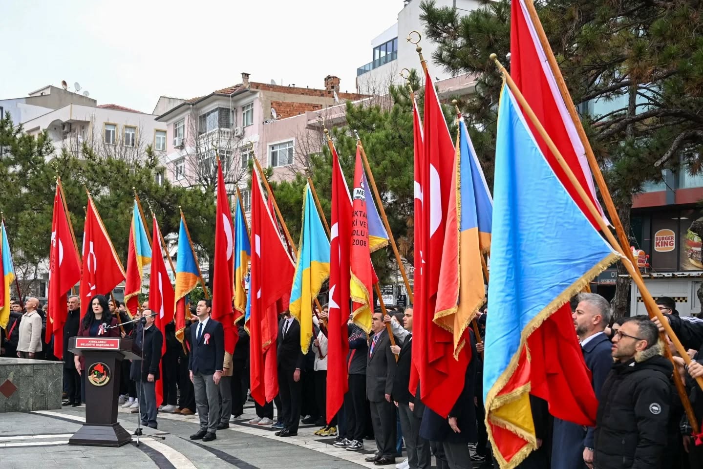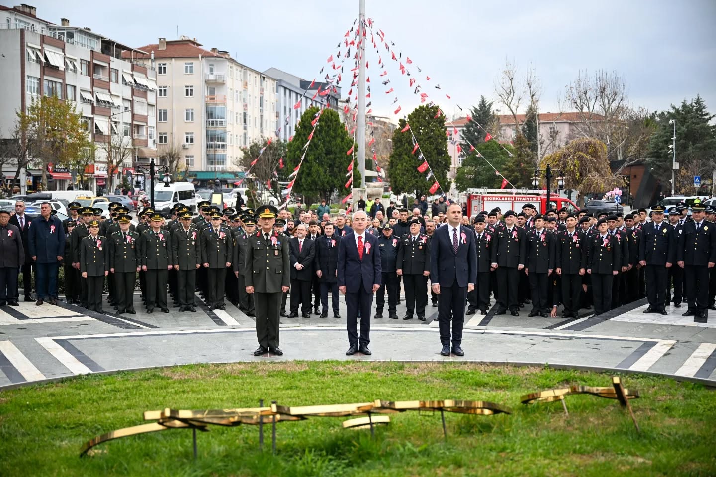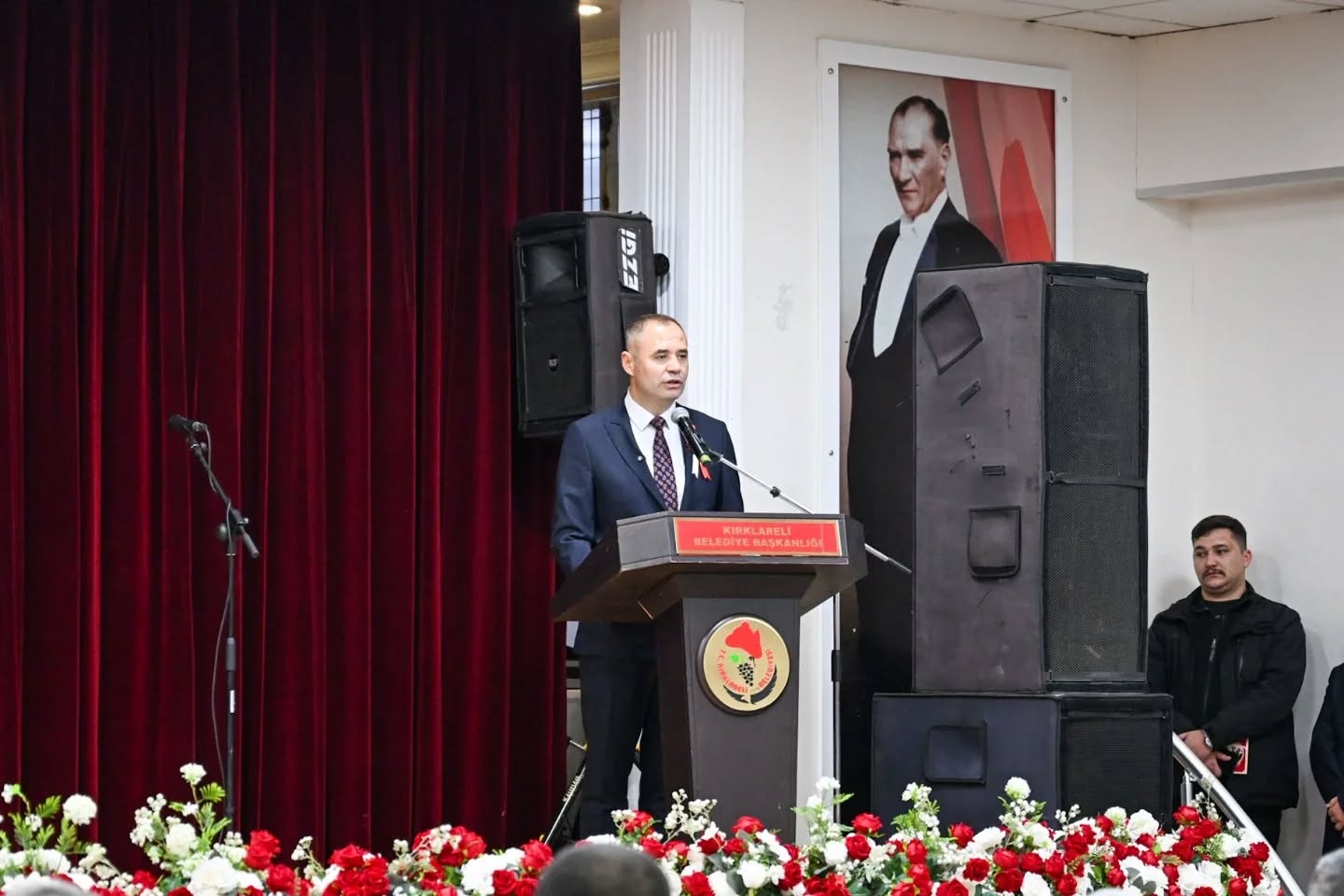 Gazi Mustafa Kemal Atatürk’ün Kırklareli’ne gelişinin 95. yıl dönümü dolayısıyla 20 Aralık Cuma Günü düzenlenen anma ve kutlama programları saat 14.00’te Özgürlük ve Demokrasi Meydanı’nda Atatürk Anıtı’na çelenk sunulmasıyla başladı. Bu kapsamda Kırklareli Valisi Uğur Turan ve Kırklareli Belediye Başkanı Derya Bulut, Atatürk Anıtı’na çelenk sunarak Gazi Mustafa Kemal Atatürk’ü saygı, rahmet ve minnetle yâd etti.Çelenk Sunma Töreni’nin ardından kutlama programı etkinlikleri kapsamında; Kırklareli Valisi Uğur Turan, şanlı Türk Bayrağı öncülüğünde, 55. Mekanize Piyade Tugay Komutanı Tuğgeneral Erdal Köse, Kırklareli Belediye Başkanı Derya Bulut, kahraman gazilerimiz, il protokolü, öğrenciler ve çok sayıda vatandaşın katılımıyla düzenlenen kortej yürüyüşüne katıldı. Kortej yürüyüşü, vatandaşların yoğun ilgisiyle gerçekleşti.Kutlama programı, Özgürlük ve Demokrasi Meydanı’ndaki etkinliklerin ardından Halk Eğitimi Merkezi Salonu’nda devam etti.Halk Eğitimi Merkezi’ndeki programa; Kırklareli Valisi Uğur Turan, kıymetli eşi Nihal Turan Hanımefendi, il protokolü ve saygıdeğer vatandaşlar katıldı. Programda, Türkiye Odalar ve Borsalar Birliği Anadolu Lisesi öğrencileri Ecem Nur Barut ve Gökay Ak tarafından, Cumhuriyetin genç emanetçileri adına ay yıldızlı şanlı Türk Bayrağı, Kırklareli Valisi Uğur Turan’a takdim edildi.Kutlama programı, saat 14.00’te Özgürlük ve Demokrasi Meydanı’nda Atatürk Anıtı’na çelenk sunulmasıyla başladı. Vali Turan, bayrağı büyük bir gururla teslim alarak Gazi Mustafa Kemal Atatürk’ü sevgi, saygı, rahmet ve minnetle andı.Saygı duruşu ve İstiklal Marşı’nın okunmasıyla başlayan törende, Kırklareli Belediye Başkanı Derya Bulut günün anlam ve önemine ilişkin bir konuşma yaptı. Başkan Bulut ayrıca yaptığı değerlendirmede şu ifadelere yer verdi:“Gazi Mustafa Kemal Atatürk’ün Kırklareli’mizi teşriflerinin 95. yıl dönümü münasebetiyle düzenlenen törende, Atatürk Anıtı’na çelengimizi sunup, Ata’mızın aziz hatırası önünde bir kez daha saygı ve minnetle eğildik.