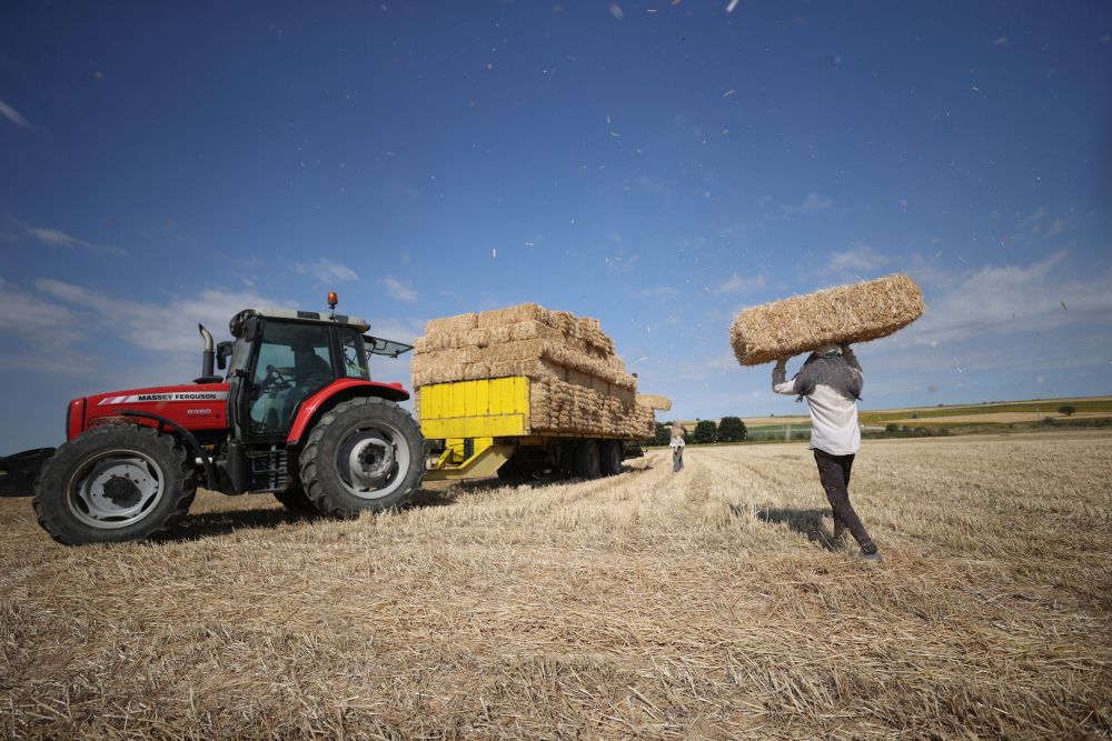 Balyaların tarladan çiftliklere taşınması ise mevsimlik işçiler tarafından gerçekleştiriliyor.