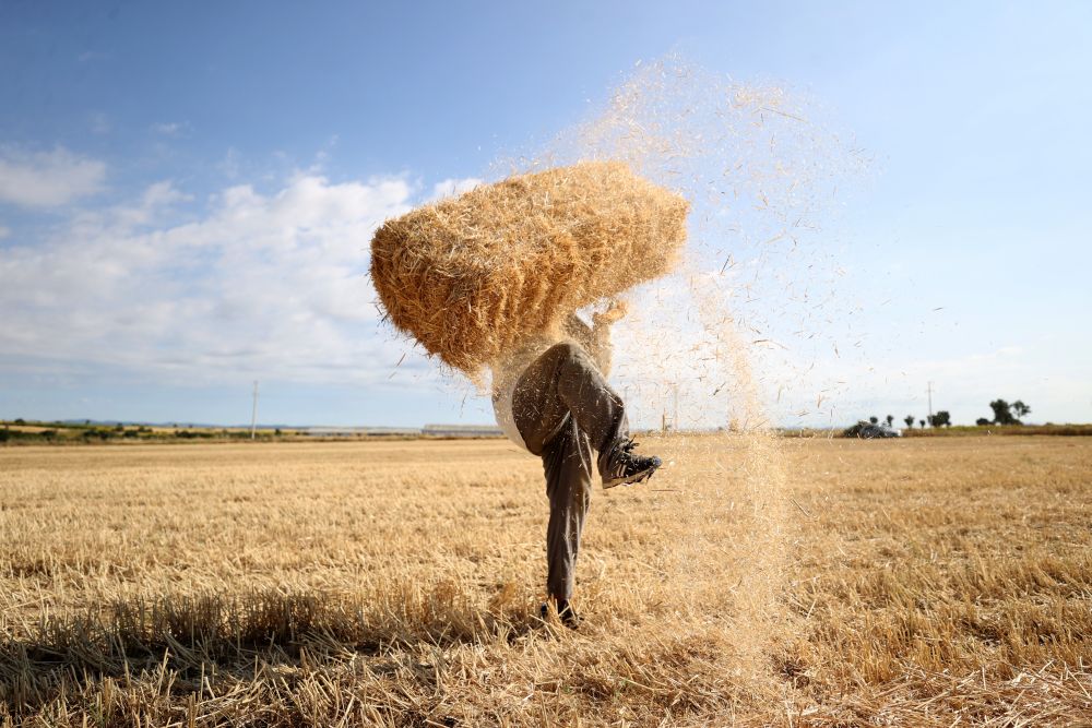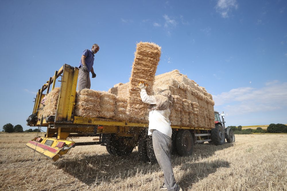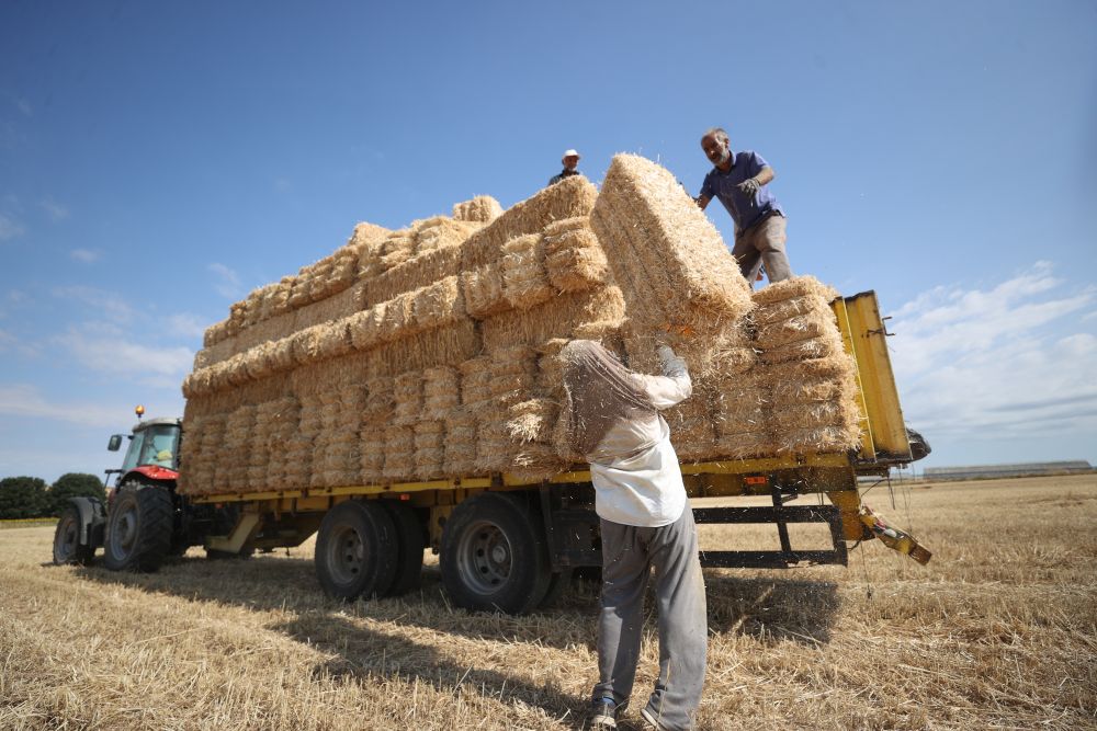 Öğle saatlerinde sıcaklığın ve römorktaki balyaların sayısının artmasıyla işçiler için zorluk da katlanıyor. Balyaları 2-3 metre yükseğe atmak zorunda kalan işçiler tüm zorluklara rağmen mesailerini sürdürüyor.