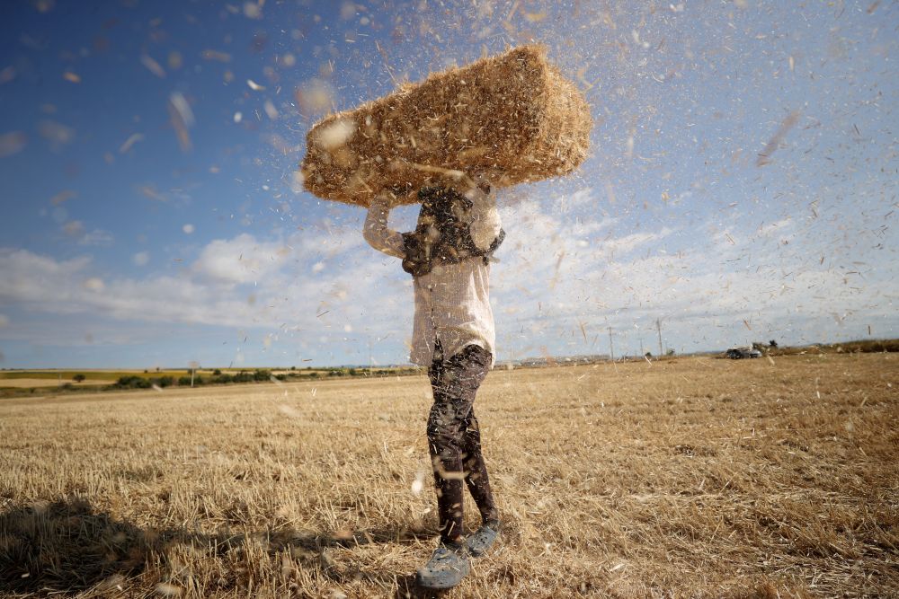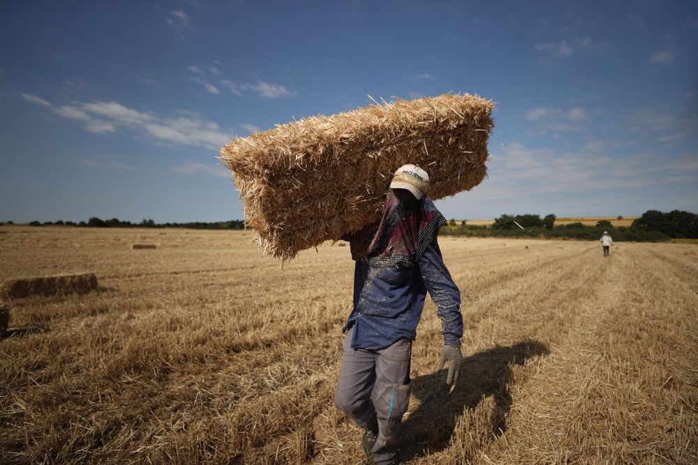 Buğday hasadının büyük ölçüde tamamlandığı Trakya'da, tarlalarda çalışan balya işçileri bir yandan sıcakla diğer yandan da yüzlerine yapışan saman ve tozla mücadele ediyor