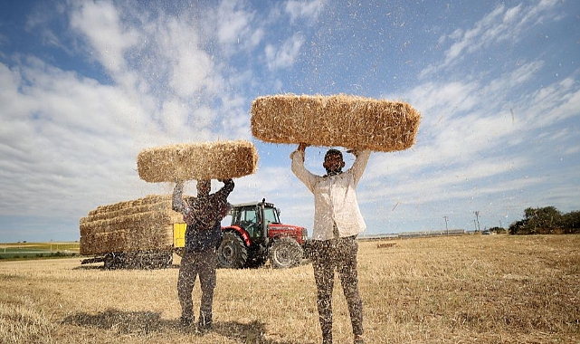 Edirne, Kırklareli ve Tekirdağ'da buğday hasadının büyük ölçüde tamamlandığı tarlalarda kalan buğday sapları, hayvancılıkta yem olarak kullanılmak amacıyla balya haline getiriliyor.