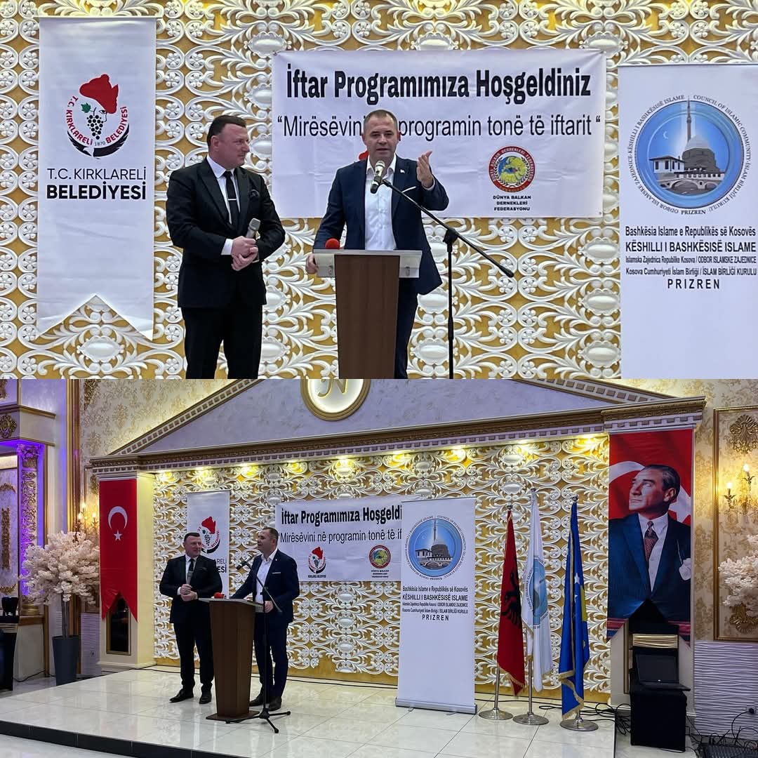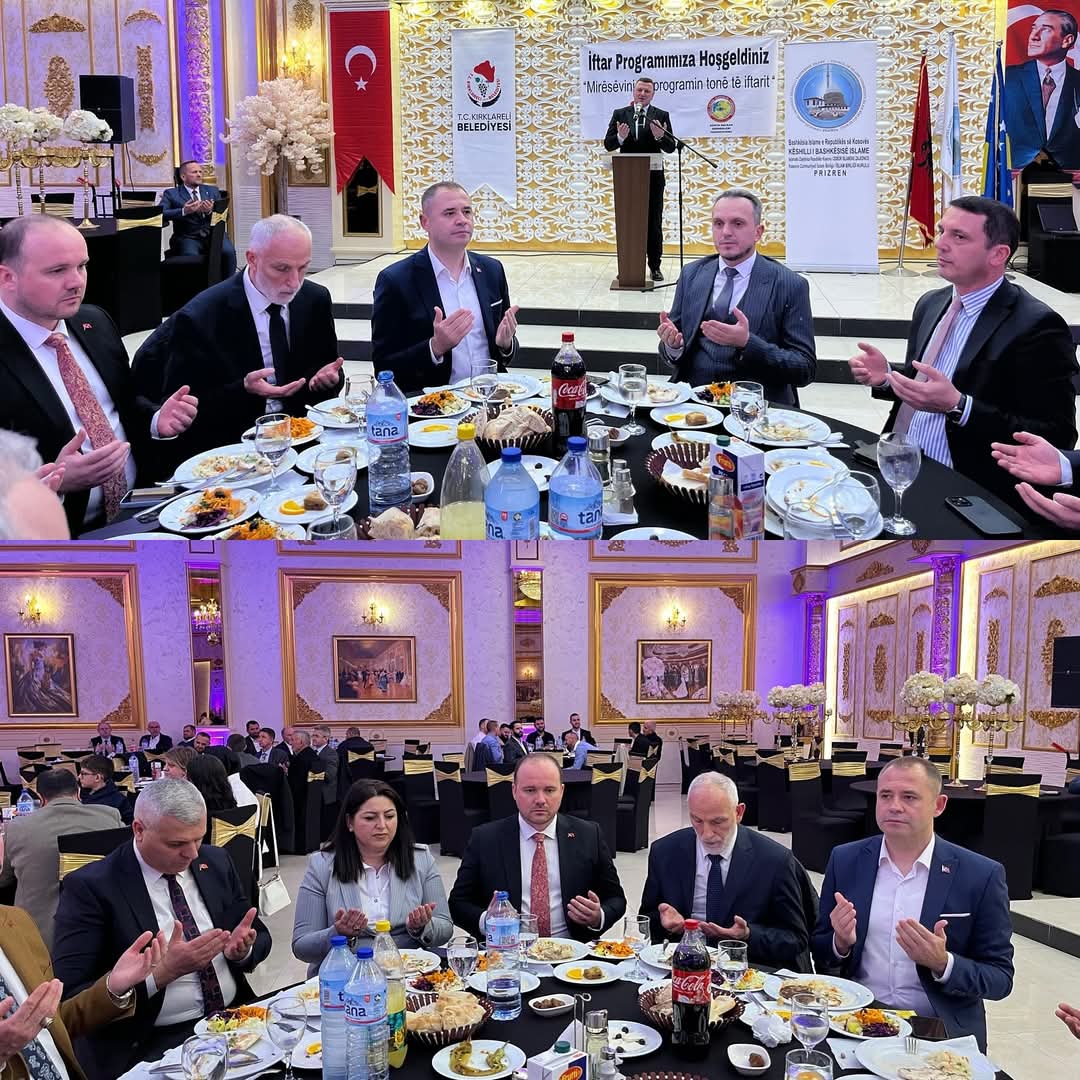 Kırklareli Belediye Başkanı Derya Bulut, Belediye Başkan Yardımcıları Kürşat Yamaner ve Burak Süzülmüş ile birlikte, Kırklareli Belediyesi tarafından Prizren’de düzenlenen iftar programına katıldı. Etkinliğe, Dünya Balkan Dernekleri Federasyonu Genel Başkanı Recep Varol, Genel Başkan Yardımcısı Taner Öztürk, Prizren Müftüsü Valon İbrahimi, Prizren Belediye Başkan Yardımcısı Kujtim Gashi, Belediye Meclis Başkanı Antigona Bytyqi, Kosova İslam Birliği Meclis Başkanı Ajni Sinani ve Prizren Emniyet Genel Müdürü Faton Alija da katıldı.Başkan Bulut yaptığı açıklamada, "Binlerce kilometrelik mesafelere rağmen hiç eksilmeyen muhabbetimiz, asırlardır süregelen birlikteliğimiz ve aynı kökten yeşeren bir çınarın dalları gibi birbirine sımsıkı sarılmamızın en güzel örneklerinden birini yaşadık. Bizler, tarihimizden aldığımız güçle, gönül bağlarımızı her zaman canlı tutacak ve varlığımızı her yerde, her koşulda birlikte yaşatacağız. İftar programımızda bizlerle olan tüm soydaşlarımıza teşekkür ediyor, birlik ve beraberlik içinde daha nice güzel günlerde buluşmayı diliyorum. Rabbim kardeşliğimizi daim kılsın, sofralarımızı bereketlendirsin" ifadelerine yer verdi.Haber Merkezi