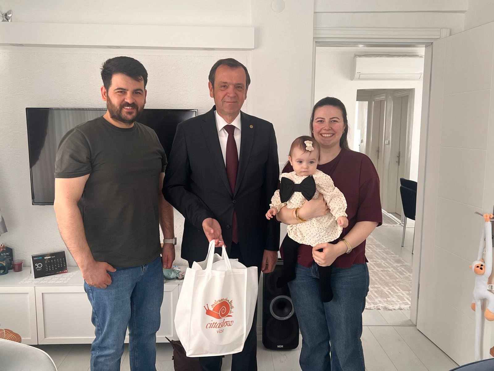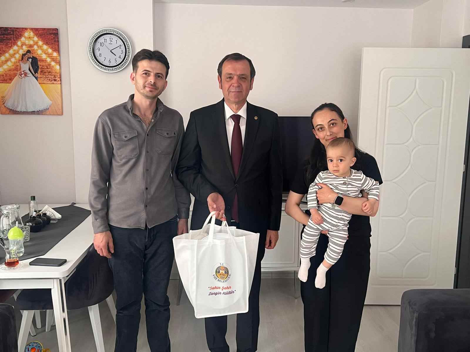 Kırklareli'nin Vize ilçe Belediye Başkanı Ercan Özalp, ilçede yeni dünyaya gelen bebekleri ve ailelerini evlerinde ziyaret etmeye devam ediyor. Sosyal belediyecilik çalışmaları çerçevesinde gerçekleştirilen ziyaretlerde, ailelerin mutluluğu paylaşılıyor.
