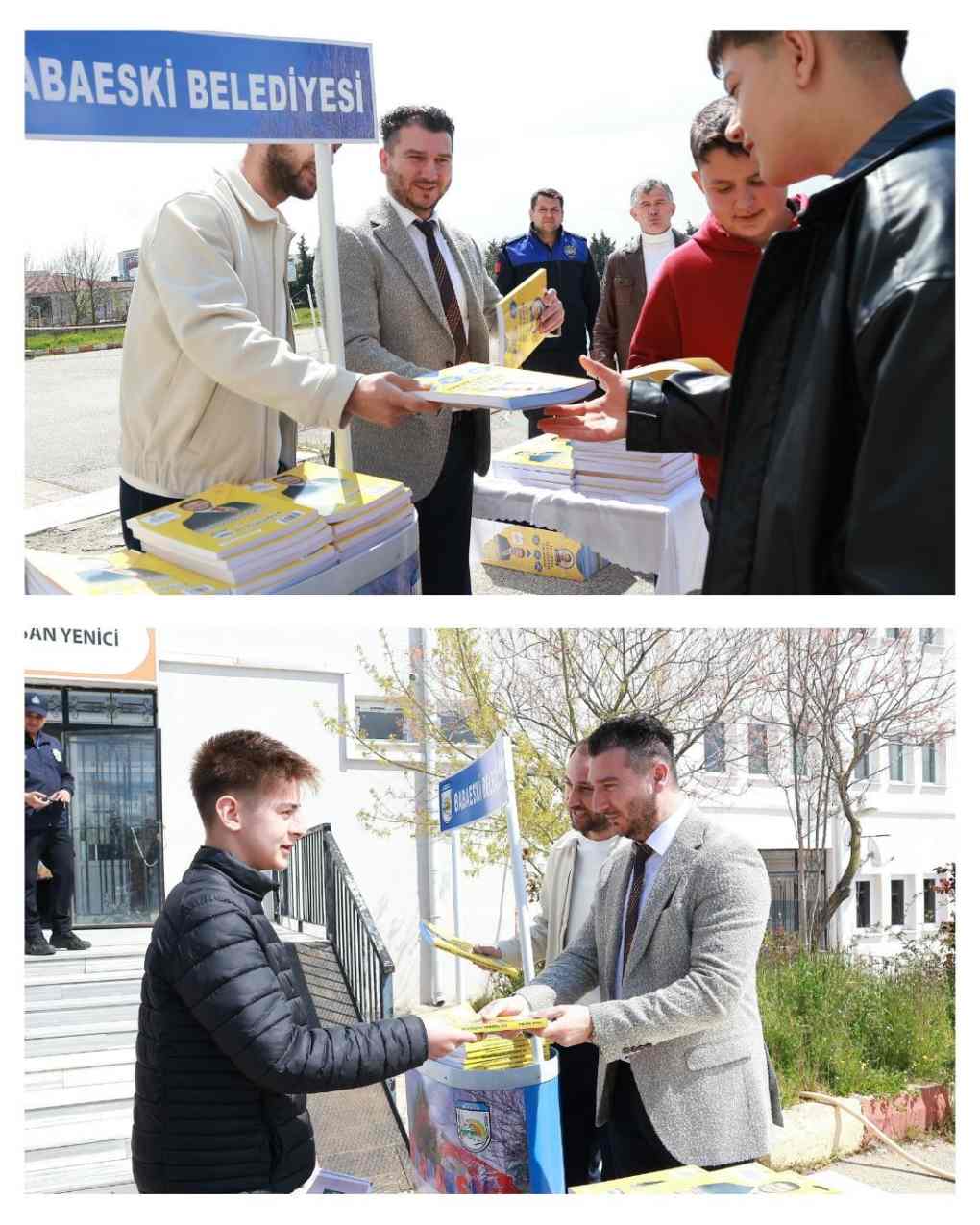 Babaeski Belediye Başkanı Fırat Yayla, Şehit Ersan Yenici Anadolu Lisesinde Liselere Geçiş Sistemi (LGS) deneme sınavına giren öğrencilerle bir araya gelerek, belediye tarafından hazırlatılan matematik soru bankalarını dağıttı.
