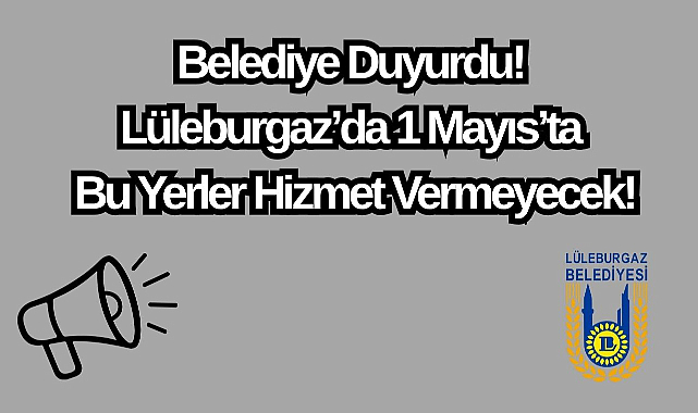 Lüleburgaz Belediyesinden yapılan açıklamada, 1 Mayıs Emek ve Dayanışma Günü'nde belediyeye ait LYBA, Kır Kahvesi ve Zübeyde Hanım Parkı'nın normal çalışma saatlerinde hizmet vereceği ifade edildi. LYLA'nın 11.00-20.00 saatleri arasında açık olacağı kaydedilen açıklamada, Zeliha Özbek Parkı ile Halk Ekmek büfelerinin ise kapalı olacağı duyuruldu.