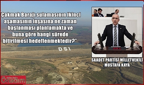 Tarım ve Orman Bakan İbrahim Yumaklı’ya 3 soru yönelten Kaya şunları kaydetti, “Bölgeye büyük ekonomik katkı sağlayacak projenin bu kadar yavaş ilerlemesi, gerekli kaynakların sağlanmaması, verilen bitiş tarihlerinin sürekli ötelenmesi sadece bu yörede yaşayan vatandaşlarımız için değil ülkemiz ekonomisi için de ciddi bir kayıptır. Devlet Su İşleri'nin (DSİ) önceki yayınlarına göre 2017'de tamamlanması gereken proje için birinci aşamasının bitirilmesi gereken tarih, Kasım 2022 olarak açıklanmasına rağmen bu tarih üzerinden yaklaşık 17 ay daha geçmiş ama projenin üçte biri bile bitirilememiştir. Bu çerçevede: 1- Çakmak Barajı sulamasının birinci aşamasının planlanan bitirilme tarihi nedir? 2- Birinci aşamanın tamamlanması için bütçe ayarlaması yapılmış mıdır? 3- Çakmak Barajı sulamasının ikinci aşamasının inşasına ne zaman başlanması planlamakta ve buna göre hangi sürede bitirilmesi hedeflenmektedir?”.