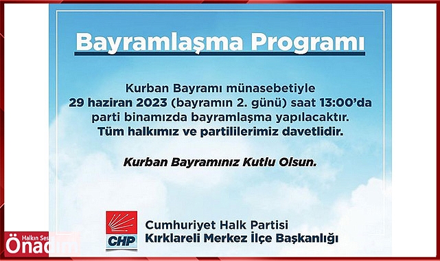 Cumhuriyet Halk Partisi Kırklareli Merkez İlçe Başkanlığı bayramın ikinci günü vatandaş ile bayramlaşıyor.