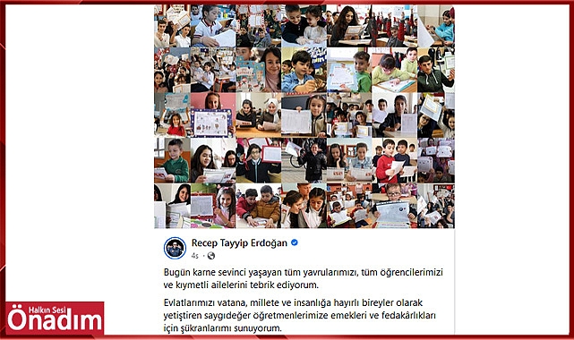 Bugün türkiyenin dörtbir yanında karne heycanı yaşandı. Öğrenciler ve ailelerin bu anlamlı gününde Cumhurbaşkanı Recep Tayyip Erdoğan'da karne alan öğrencileri ve ailelerini tebrik etmeyi ihmal etmedi. Sosyal medya hesabında yaptığı paylaşımda şu ifadelere yer verdi;