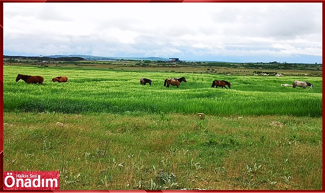Burası Kırklareli'nin kırsalı değil, TOKİ binalarının bulunduğu güzergah. Başı boş atlar ana yol ve ara yollarda ve ekin tarlalarına zarar vererek tehlike saçıyor.