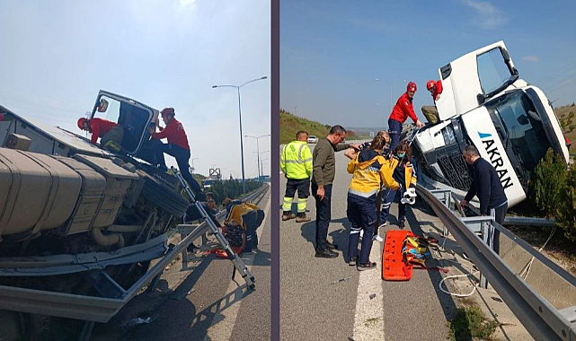 Dehşet! Devrilen Tırın Sürücüsü Yaralandı...