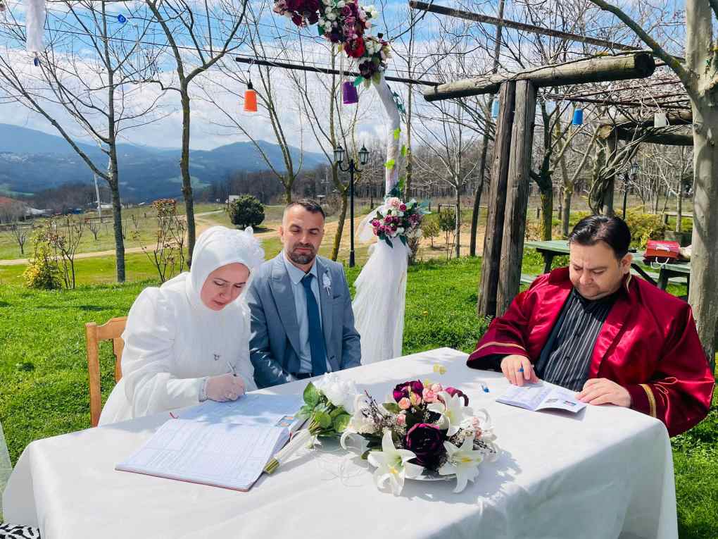 Kırklareli'ne bağlı Demirköy İlçesi Belediye Başkanı Recep Gün, Ersin Germiç ve Ayşe Atalay çiftinin nikah akdini gerçekleştirerek çiftin en mutlu günlerine tanıklık etti. Düzenlenen törende çiftin nikahını kıyan Başkan Gün, yeni evli çifte bir ömür boyu mutluluklar diledi.