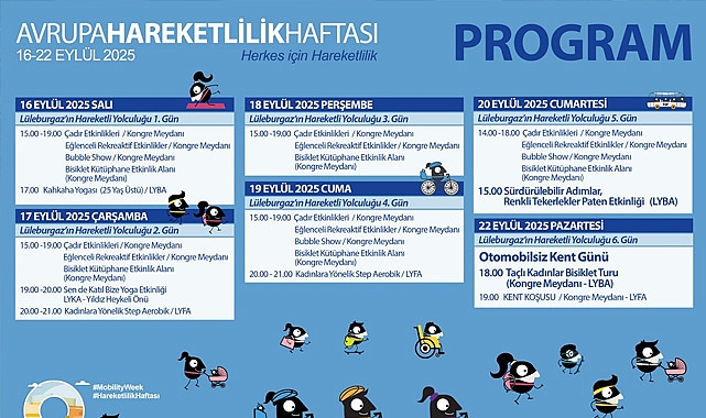 Program kapsamında 22 Eylül’de ise “Otomobilsiz Kent Günü” etkinlikleri düzenlenecek. Taçlı Kadınlar Bisiklet Turu ve Kent Koşusu ile haftaya toplumsal katılımın en yoğun şekilde sağlanması hedefleniyor.