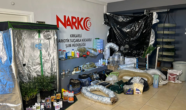 - Uyuşturucu madde üretiminde kullanıldığı düşünülen çok sayıda saksı, vantilatör, oda nemlendirici, havalandırma sistemi, ışık sistemi, nem ölçer, ısı ölçer, güç kaynağı, bitki besini, su pompası, vakum pompası, hava pompası ve çadır ele geçirildi.