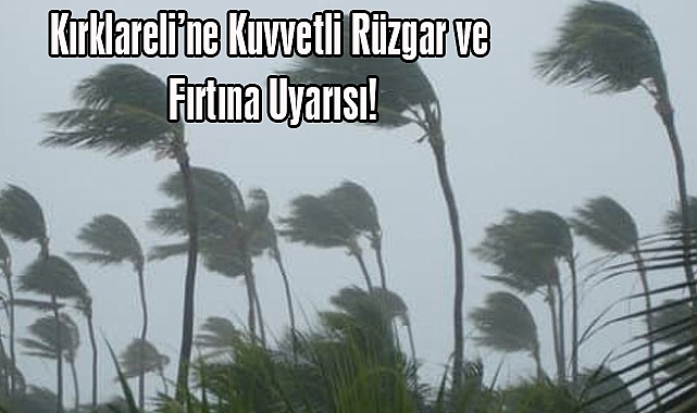Kırklareli genelinde kuvvetli rüzgar ve fırtına bekleniyor. Meteoroloji Genel Müdürlüğü’nden yapılan açıklamaya göre, olumsuz hava koşulları 12 Ağustos 2025 Salı günü saat 18.00’de başlayacak ve 14 Ağustos 2025 Perşembe günü saat 12.00’ye kadar devam edecek.