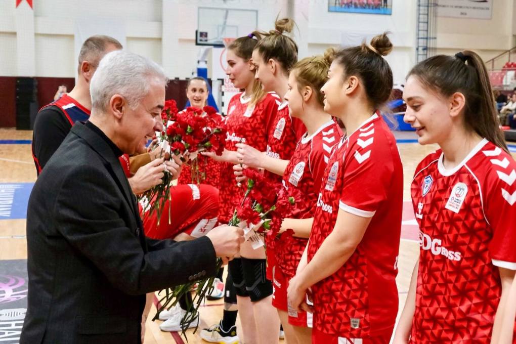 Kırklareli Valisi Uğur Turan ve eşi Nihal Turan ile Belediye Başkanı Derya Bulut, Kırklareli Belediyesi FBO Kadın Basketbol Takımı’nın maçını izledi. Maç öncesi sporculara çiçek veren Vali Turan, kadınların spordaki başarısını kutladı.