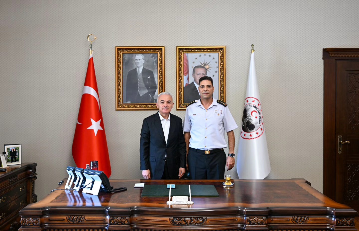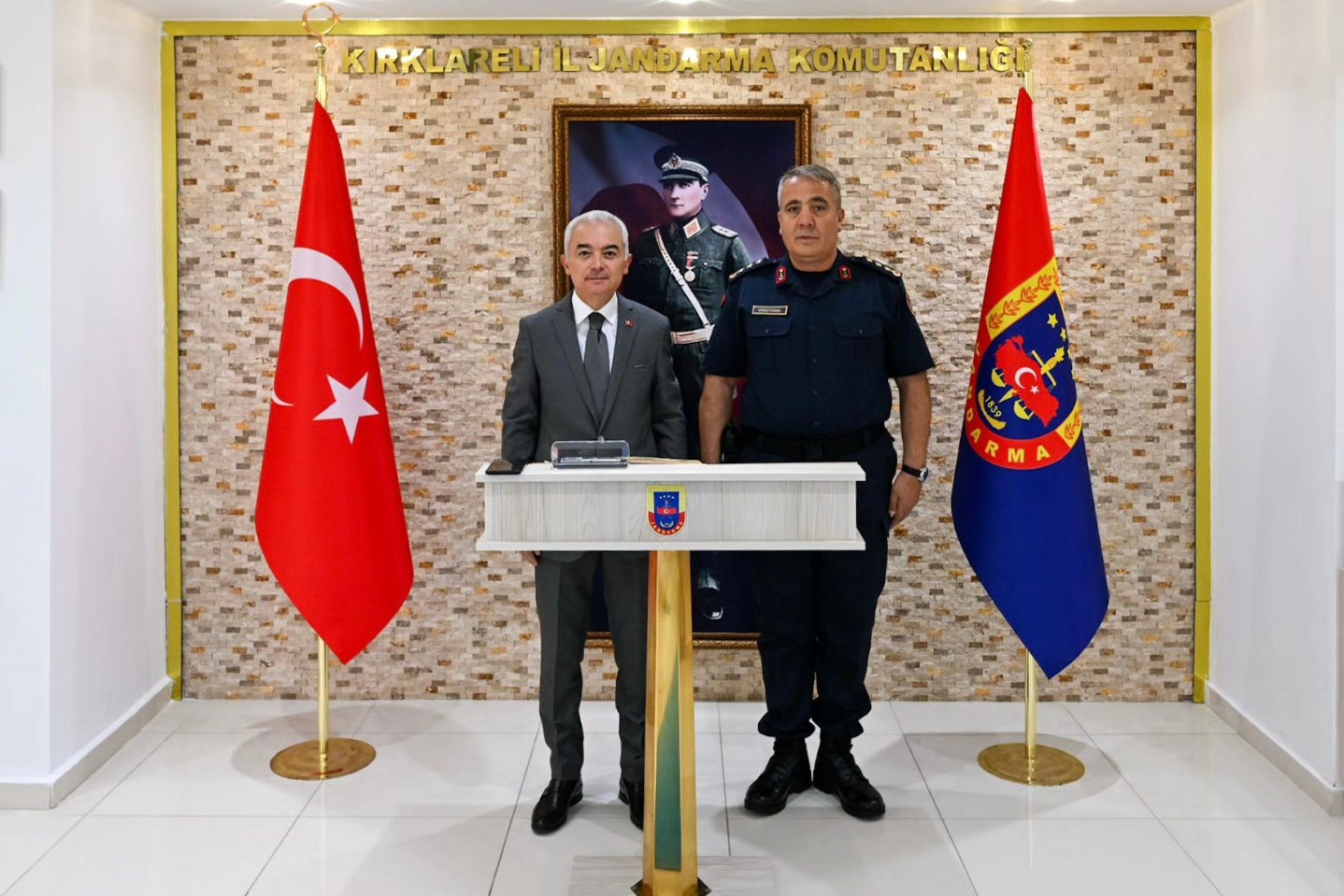 Görev süresi sona eren Kırklareli İl Jandarma Komutan Yardımcısı Jandarma Kıdemli Albay Yusuf Yurdugül, İzmir İl Jandarma Komutan Yardımcılığı görevine atanması dolayısıyla Vali Uğur Turan’a veda ziyaretinde bulundu.