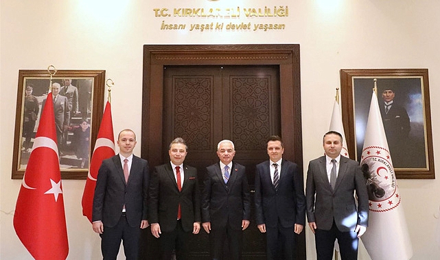 Kırklareli Valisi Uğur Turan, Öz Finans-İş Sendikası İstanbul Avrupa Bölge Başkanı Dr. Mümin Evren ve beraberindeki heyeti Valilik Makamında kabul etti. Gerçekleşen ziyaretten duyduğu memnuniyeti dile getiren Vali, konukları ile bir süre sohbet ederek, nazik ziyaretlerinden dolayı teşekkür etti.