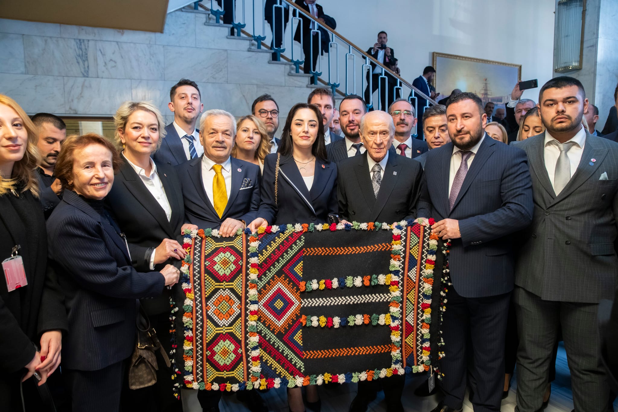 Milliyetçi Hareket Partisi (MHP) Kırklareli İl Başkanı Şaban Savaşan ve İl Teşkilat Başkanı Harun Işıkveren öncülüğündeki MHP Kırklareli İl Teşkilatı, Türkiye Büyük Millet Meclisi’nde düzenlenen MHP Grup Toplantısı’na katılarak Genel Başkan Devlet Bahçeli’nin hitabını yerinde dinledi.Teşkilat üyeleriyle birlikte Ankara’ya çıkarma yapan Başkan Savaşan, toplantının ardından MHP Genel Merkezi'nde önemli temaslarda bulundu. Başkan Savaşan ve Işıkveren, MHP Genel Başkanı Devlet Bahçeli tarafından makamda kabul edildi. Ziyarette, Kırklareli teşkilatının çalışmaları hakkında bilgi verilirken, Genel Başkan Bahçeli’nin görüş ve tavsiyeleri dinlendi.Bahçeli’ye Kırklareli’nin Kültürel Mirası Takdim EdildiZiyaret kapsamında Başkan Şaban Savaşan, Kırklarelili hanımefendilerin el emeği olan Poyralı Dokuma Seccade’yi Genel Başkan Bahçeli’ye hediye etti. Başkan Savaşan, bu özel hediyenin, Kırklareli’nin yerel değerlerini yansıtması bakımından büyük anlam taşıdığını belirtti.“Adını Pınarhisar ilçemize bağlı Poyralı köyünden alan bu dokumalar, yatay tezgâhlarda bezayağı tekniğiyle dokunmakta; çözgü, atkı ve desen iplerinde kök boyayla renklendirilmiş yün kullanılmaktadır. Seccadelerimiz; Koç Boynuzu, Üç Güller, Meşe Dalı ve Göz gibi geleneksel motiflerle süslenmektedir,” dedi.Başkan Savaşan ve İl Teşkilat Başkanı Harun Işıkveren, ayrıca MHP Genel Başkan Yardımcılarıyla da görüşerek teşkilat çalışmaları hakkında istişarelerde bulundu.“Kırklareli Teşkilatı Olarak Kararlılıkla Çalışmaya Devam Edeceğiz”Ziyaretin ardından bir değerlendirmede bulunan İl Başkanı Savaşan, “Sayın Genel Başkanımızın güçlü liderliğinde, Kırklareli teşkilatı olarak birlik ve inançla çalışmalarımızı sürdüreceğiz. Hem yerel kültürümüzü yaşatmak hem de partimizin ilkeleri doğrultusunda hizmet üretmek önceliğimizdir,” ifadelerini kullandı.Derya Atkoşan