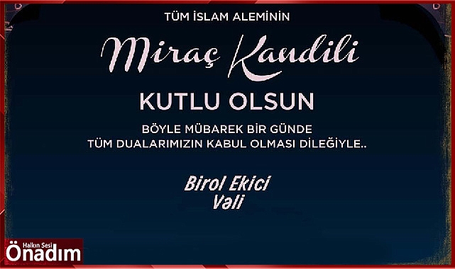 Kırklareli Valisi Birol Ekici mesajında, “Miraç, Alemlere rahmet olarak gönderilen Peygamber Efendimiz (SAV)’in, bir gece Mescidi Haramdan Mescid-i Aksa’ya oradan da semaya yaptığı ve Yüce Yaradan’ın sonsuz kudretinin eserlerini temaşa ettiği hikmet yüklü yolculuktur.