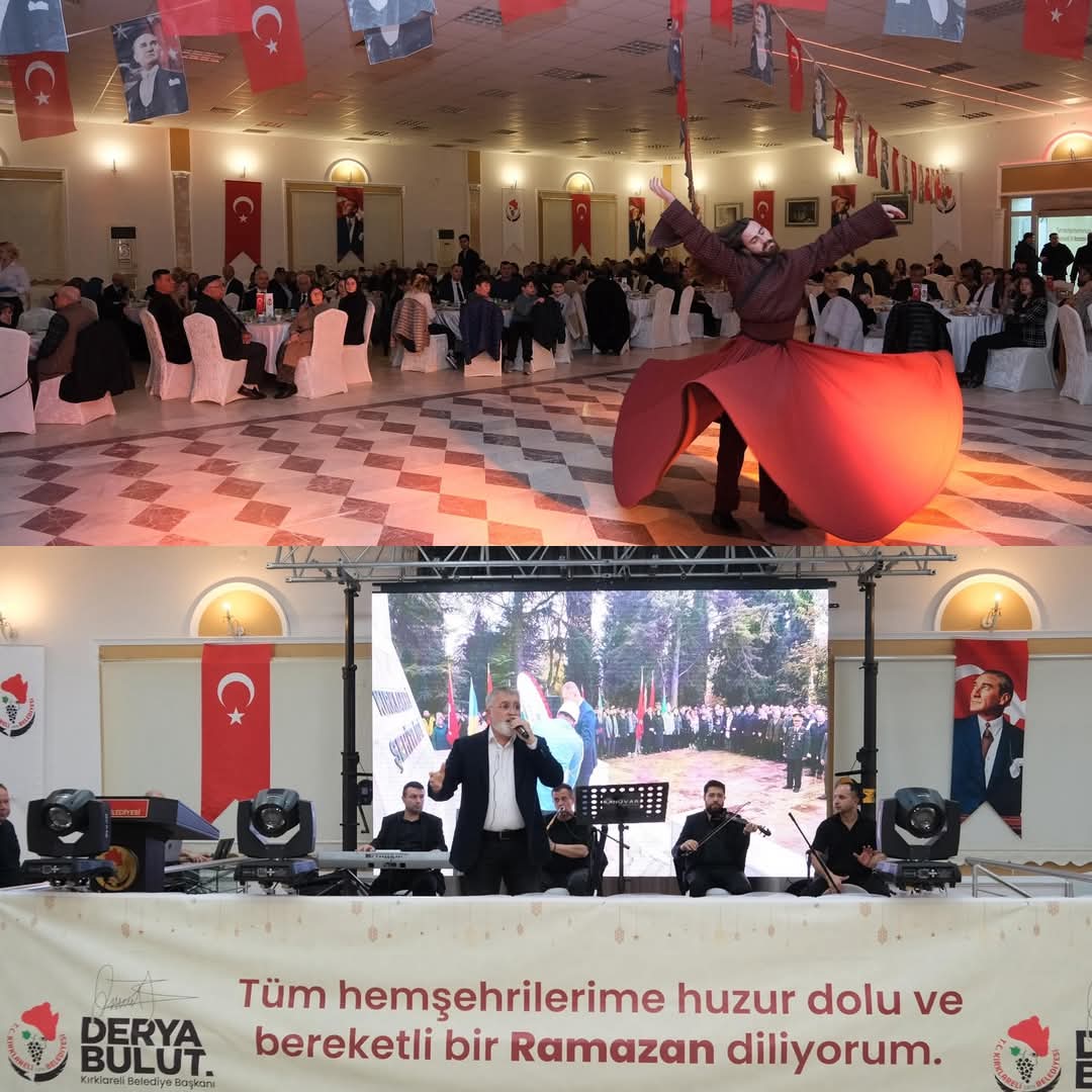 Kırklareli Belediye Başkanlığı tarafından, Belediye Başkanı Derya Bulut ve eşi Özge Bulut'un ev sahipliğinde düzenlenen iftar programına, Kırklareli Valisi Uğur Turan ve eşi Nihal Turan başta olmak üzere il protokolü katıldı. Programda, şehit aileleri ve kahraman gazilerimizle bir araya gelindi.Belediye Başkanı Derya Bulut, programda yaptığı konuşmada, "Şehitlerimizin bize bıraktığı en büyük emanet, bu vatanın bağımsızlığı ve milletimizin onurudur. Şehit ailelerimiz ve gazilerimiz, en kıymetli değerlerimizdir. Onlarla aynı sofrada buluşmak, dualarımıza ortak olmak bizim için en büyük şereftir. Bu topraklar uğruna can veren kahramanlarımızı rahmet ve minnetle anıyor, gazilerimize sağlık ve huzur diliyorum" ifadelerini kullandı.İftar sonrasında katılımcılar, ilahi dinletisini büyük bir huzur içinde dinlerken, semazen gösterisi ise programın en dikkat çeken anlarından biri oldu. Semazenler, geleneksel kıyafetleriyle sergiledikleri dönüşleriyle izleyenlere görsel bir şölen sundu. İlahi dinletisi ise dinleyicilere manevi bir huzur sağlarken, semazenlerin gösterisi ile program, izleyenlere unutulmaz anlar yaşattı.Haber Merkezi
