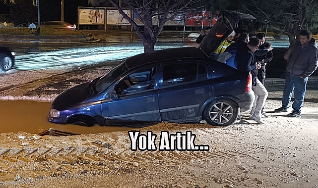 Patlama sonucu oluşan çukura yoldan geçen bir otomobil düştü. Sürücü, kendi imkanlarıyla araçtan çıktı.
