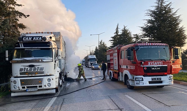 Balıkesir'de seyir halindeki kamyonda çıkan yangın söndürüldü.Çevre yolundan İzmir istikametinde seyir halindeki henüz sürücüsünün kimliği öğrenilemeyen 35 AKA 560 plakalı otomotiv yedek parçası taşıyan kamyonda yangın çıktı.Kamyonun lastiğinde başlayan yangın büyüdü. Çevredekilerin ihbar üzerine olay yerine itfaiye ekipleri sevk edildi. Ekiplerin kontrol altına aldığı yangın söndürüldü.Yangın nedeniyle kamyonda hasar oluştu.AA