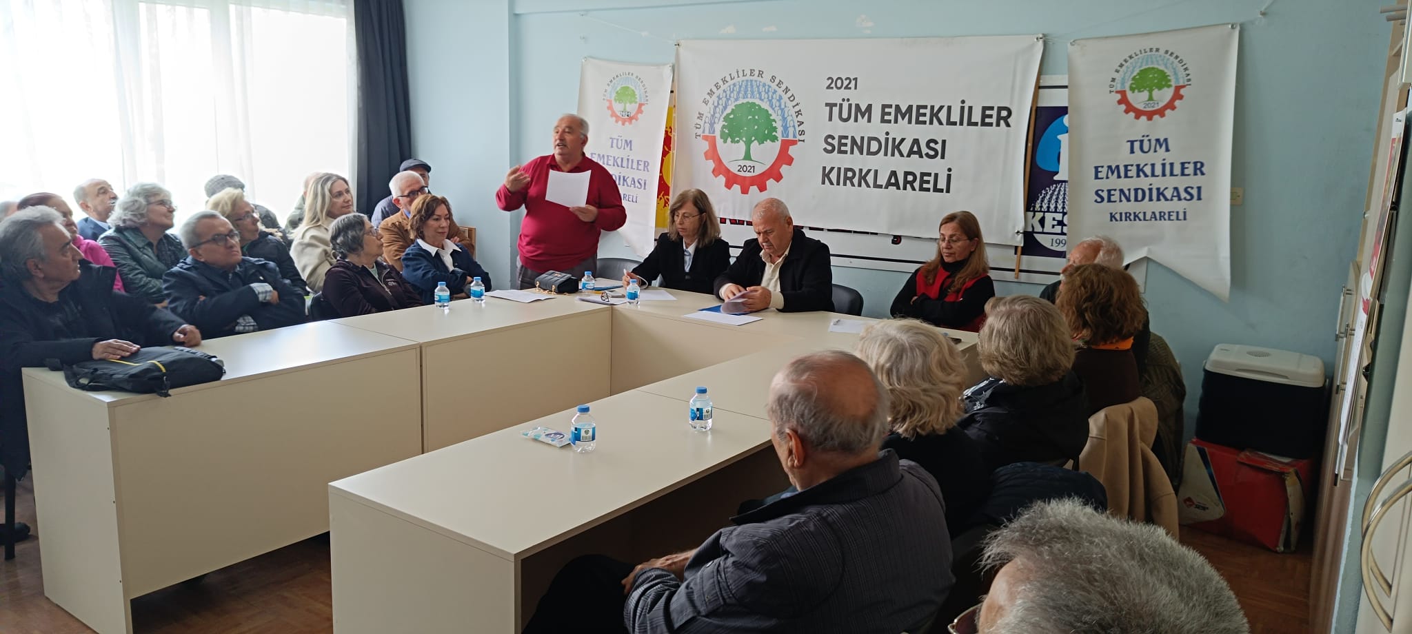 2021 Tüm Emekliler Sendikası Kırklareli Şubesi Olağan Genel Kurulu 22 Nisan 2026 Çarşamba Günü Saat 14.00- 16.00 Arasında Eğitim-Sen Salonu’nda gerçekleştirildi. Kırklareli Eğitim-Sen Salonu’nda yapılan genel kurulda, üyelerin katılımıyla seçim heyecanı yaşandı.Genel kurul kapsamında yapılan seçim sonucunda sendikanın yeni dönem yönetimi belirlendi. Üyelerin oylarıyla Yürütme Kurulu’na seçilen isimler Hüseyin Budak, Cafer Sezer, Necla Kontacı, Aynur İskar, Hatice Camcı, Necdet Göç ve Birol Haker oldu.Yoğun katılımla gerçekleşen genel kurulda, emeklilerin hakları, sosyal ve ekonomik beklentileri ile sendikal çalışmaların geleceği de ele alındı. Yeni yönetimin önümüzdeki dönemde emeklilerin taleplerine yönelik çalışmalarını sürdürmesi bekleniyor. Haber Merkezi