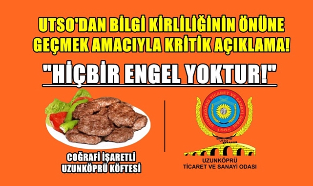 Uzunköprü Ticaret ve Sanayi Odası (UTSO), 'Uzunköprü Köftesi'nin Coğrafi İşaretli Ürün tescili almasının ardından kamoyunda ortaya çıkan bir takım bilgi kirliliğinin önüne geçmek amacıyla bir açıklama yaptı.