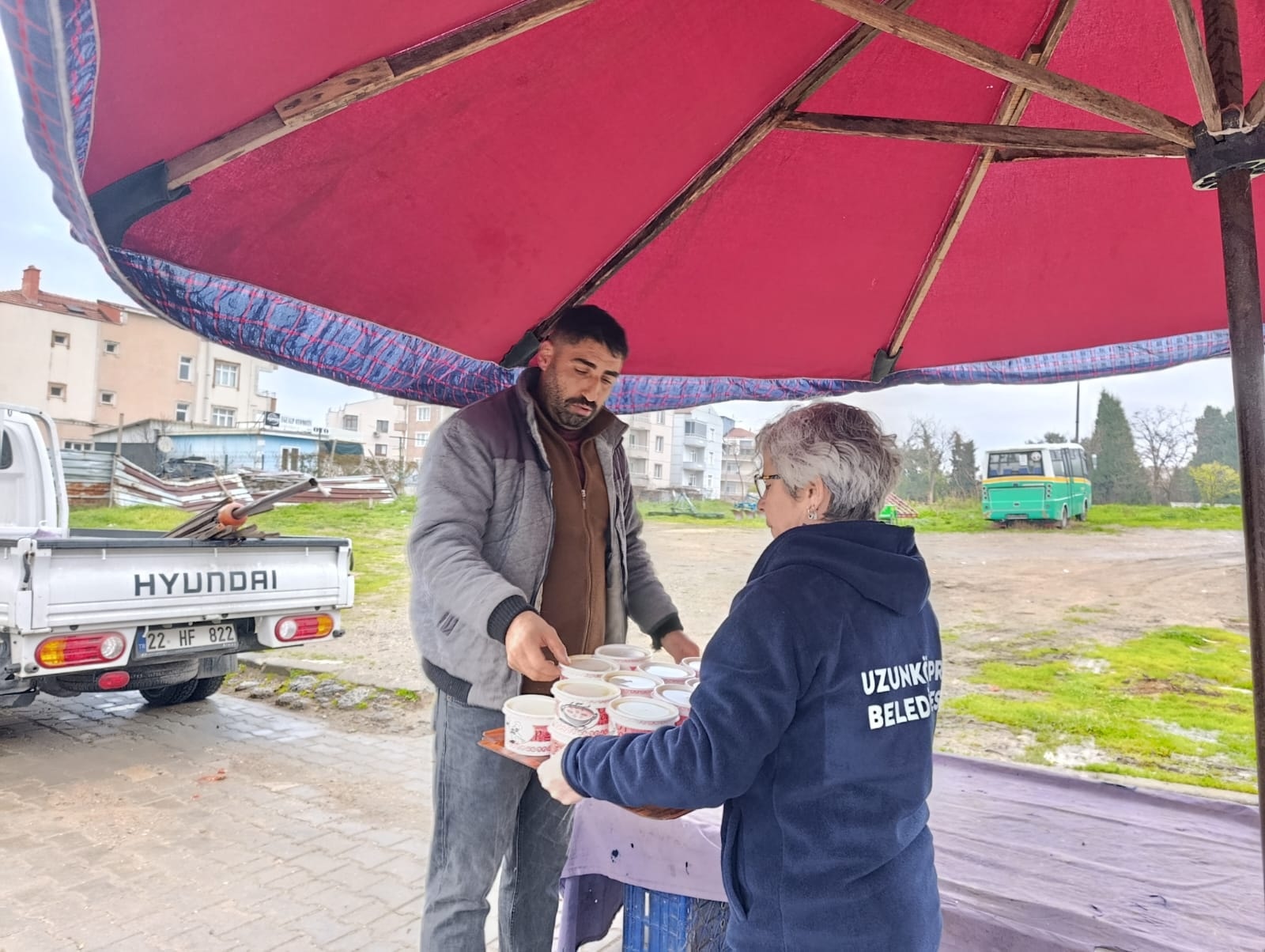 Program kapsamında ilk olarak, tezgahlarını hazırlayan esnafa Uzunköprü Belediyesi yetkilileri tarafından sıcak çorba ikramında bulunuldu.