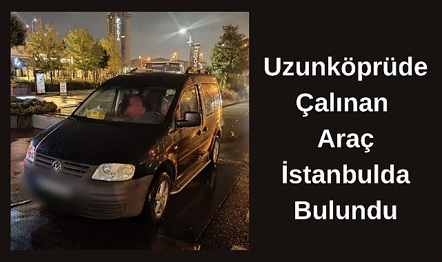 Edirne’nin Uzunköprü ilçesine bağlı Yeniköy Mahallesi’nde 5 Kasım 2025 günü saat 19.08 sıralarında çalınan 22 .. ... plakalı Volkswagen Caddy marka araç, İstanbul’un Büyükçekmece ilçesinde bulundu.Edinilen bilgilere göre, İstanbul Büyükçekmece Emniyet Müdürlüğü ekipleri, 6 Kasım 2025 günü saat 02.20 sıralarında Cumhuriyet Mahallesi, Gürpınar Yolu Caddesi üzerindeki Avenue AVM önünde park halinde terk edilmiş aracı buldu.Konu hakkında Nöbetçi Cumhuriyet Savcısına bilgi verilerek alınan talimat doğrultusunda araç, Büyükçekmece Ayyıldız Yediemin otoparkına çekildi. Araç üzerinde Olay Yeri İnceleme ekiplerince gerekli çalışmaların yapılacağı bildirildi.Şüphelilerin kimliklerinin tespit edilmesi ve yakalanmalarına yönelik çalışmaların sürdüğü öğrenildi. Gelişmelerin kamuoyu ile paylaşılacağı belirtildi.Önadım Gazetesi